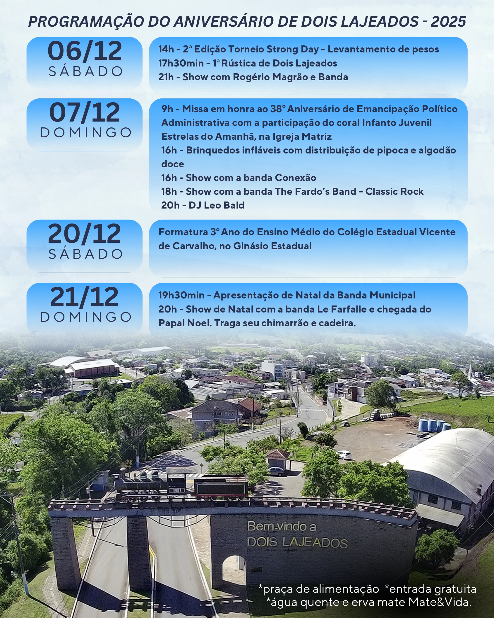 Venha participar das comemorações de 38º Aniversário de Emancipação Político Administrativa de Dois Lajeados.